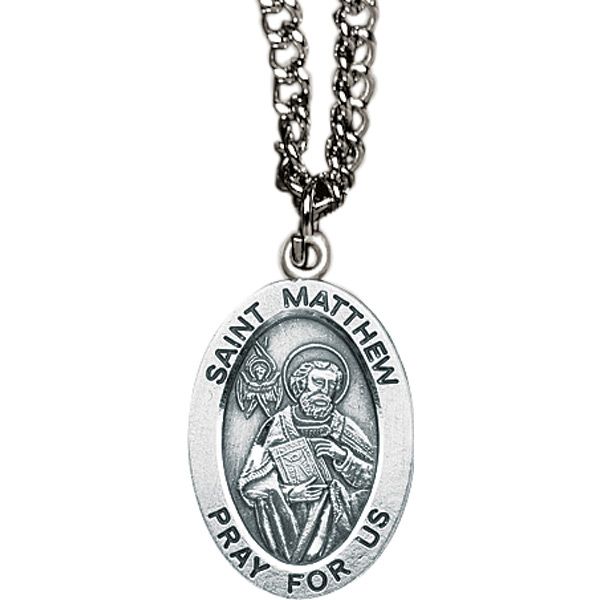 St. Matthew wrote the first gospel in our Lord's native Aramaic to aid the early Christians in their faith and to keep them from falling back into Judaism. His main focus was on the messianic nature of Christ's kingdom. Reads, Saint Matthew Pray For Us around the outside edge.