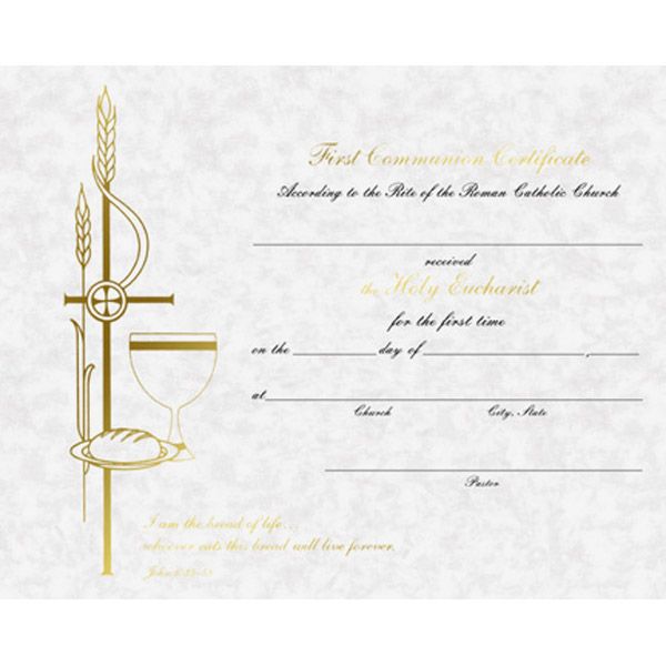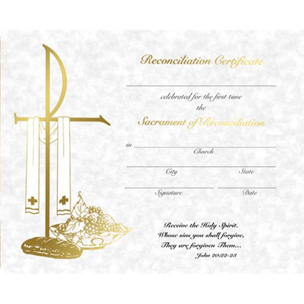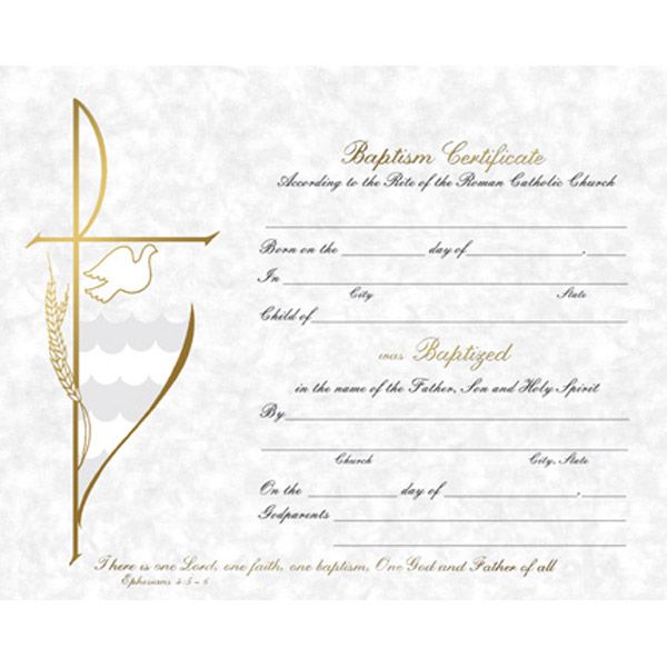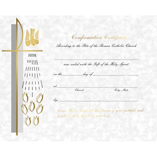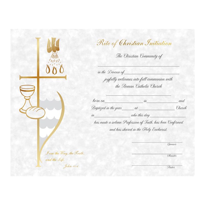 Perfect for any parish, these certificates have all the spaces needed to fill out the required information for those receiving the initiatory sacraments and rites of the Roman Catholic faith. Measures 8 x 10"