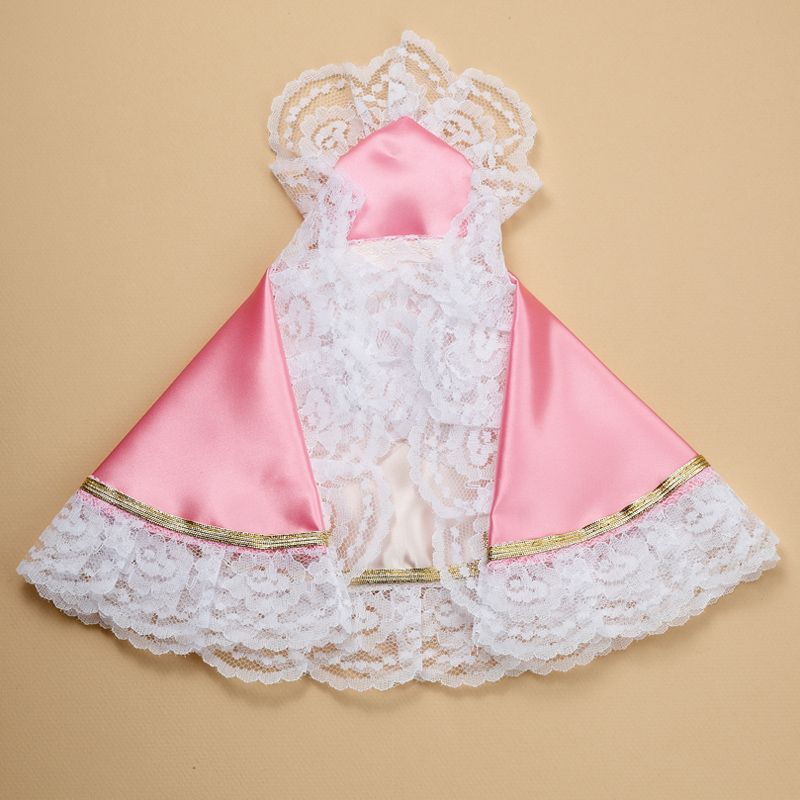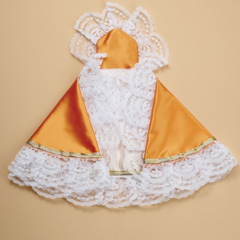 Devotion to the Holy Infant Jesus originally began with the Carmelite religious order, but has since spread to the faithful worldwide. These gorgeously made satin vestments with lace trim are perfect for dressing your Catholic statue of the Divine Child, who promises us so many things when we come to Him with child-like confidence. Available in multiple colors, see our drop-down list above to choose.