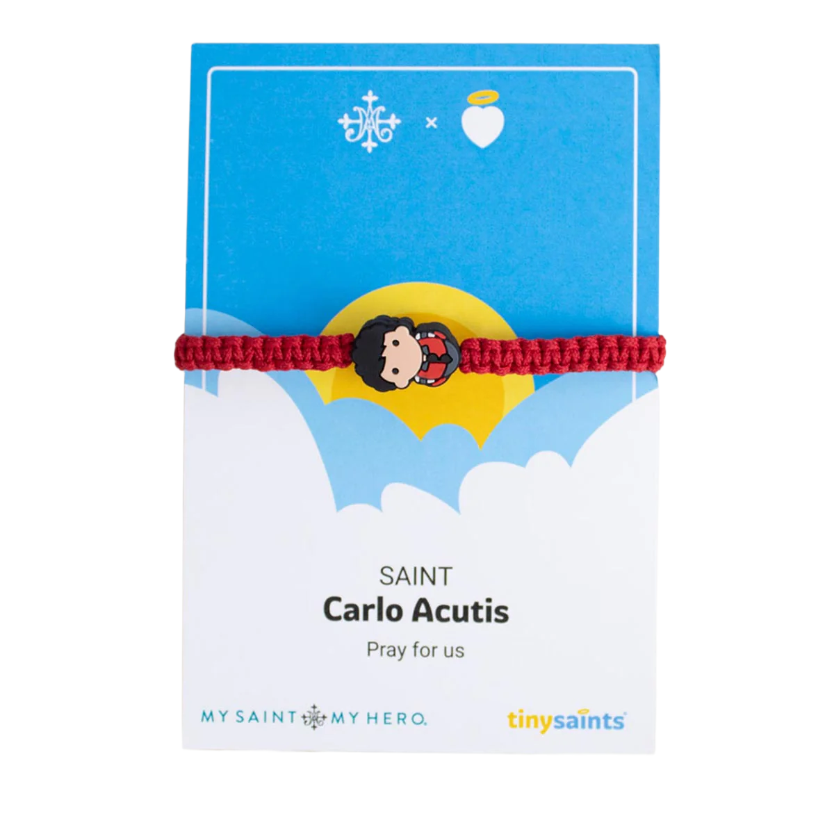 Adjustable (slide knots) cord bracelet featuring a Tiny Saint of Carlo Acutis. Overall measurement is 5 - 6".